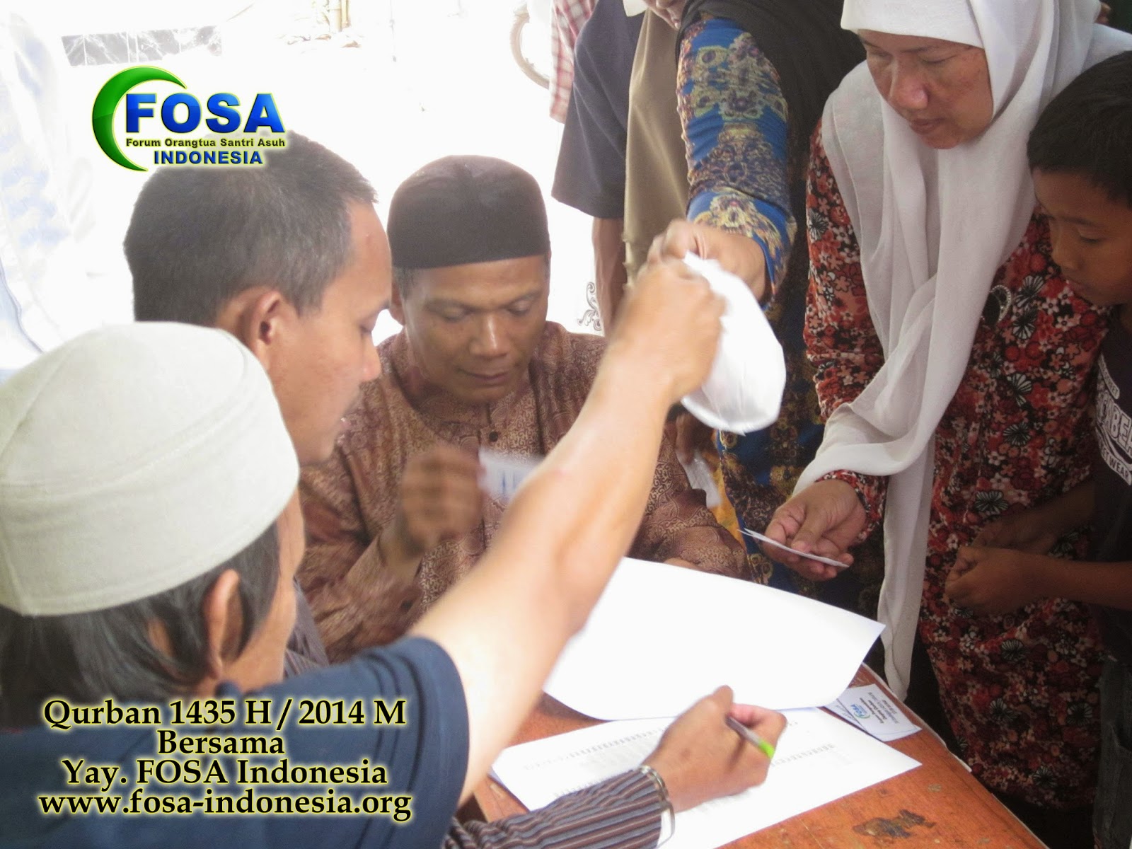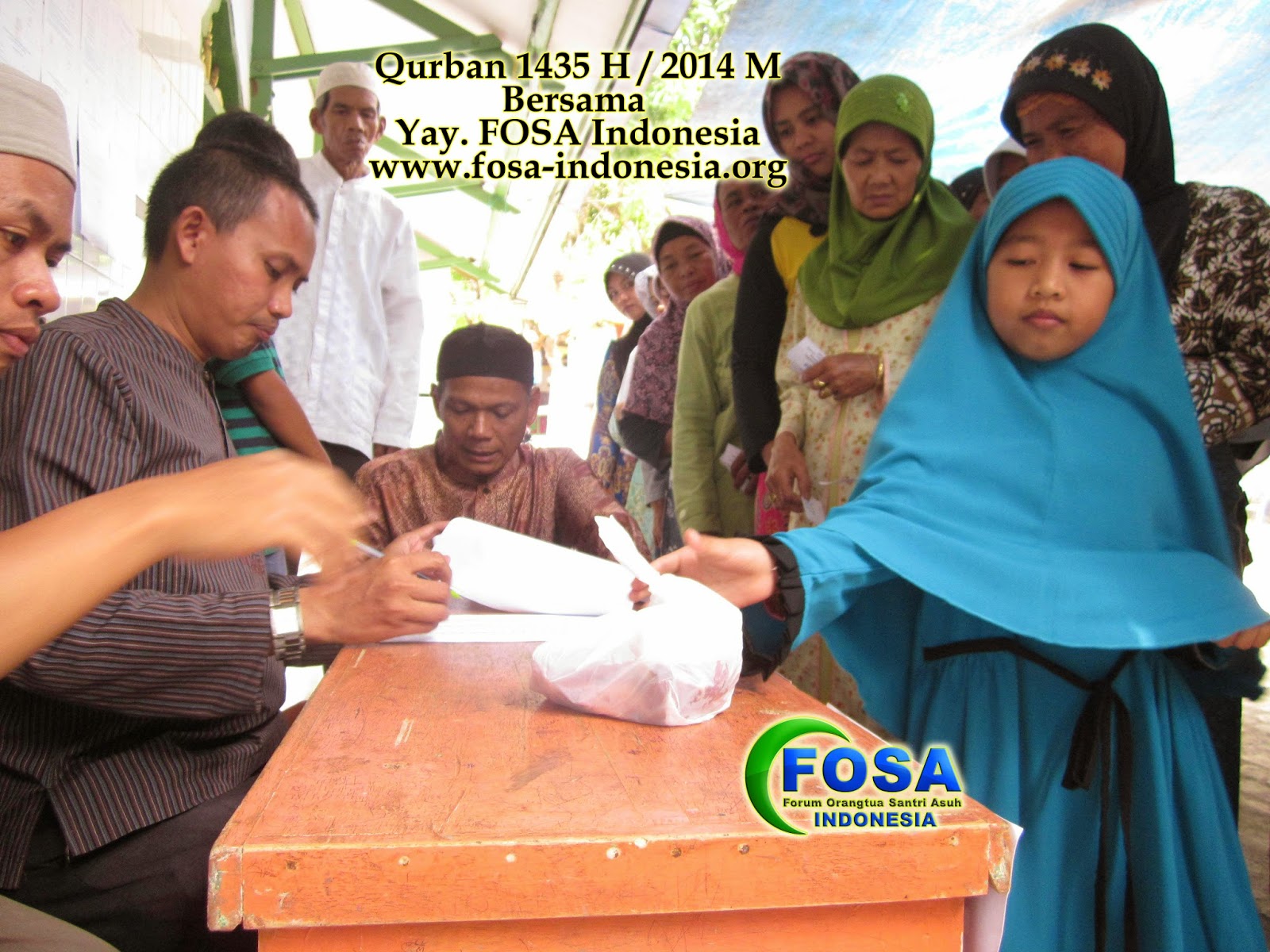 Alahmdulillah dengan izin Allah, yayasa FOSA Indonesia telah menyalurkan daging hewan Qurban hampir 1000 paket. Dengan sasaran penerima adalah para santri asuh, para asatizd, masyarakat sekitar yayasan, kaum dhu’afa, jompo dan fakir miskin.
